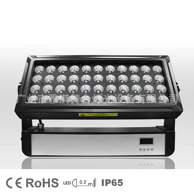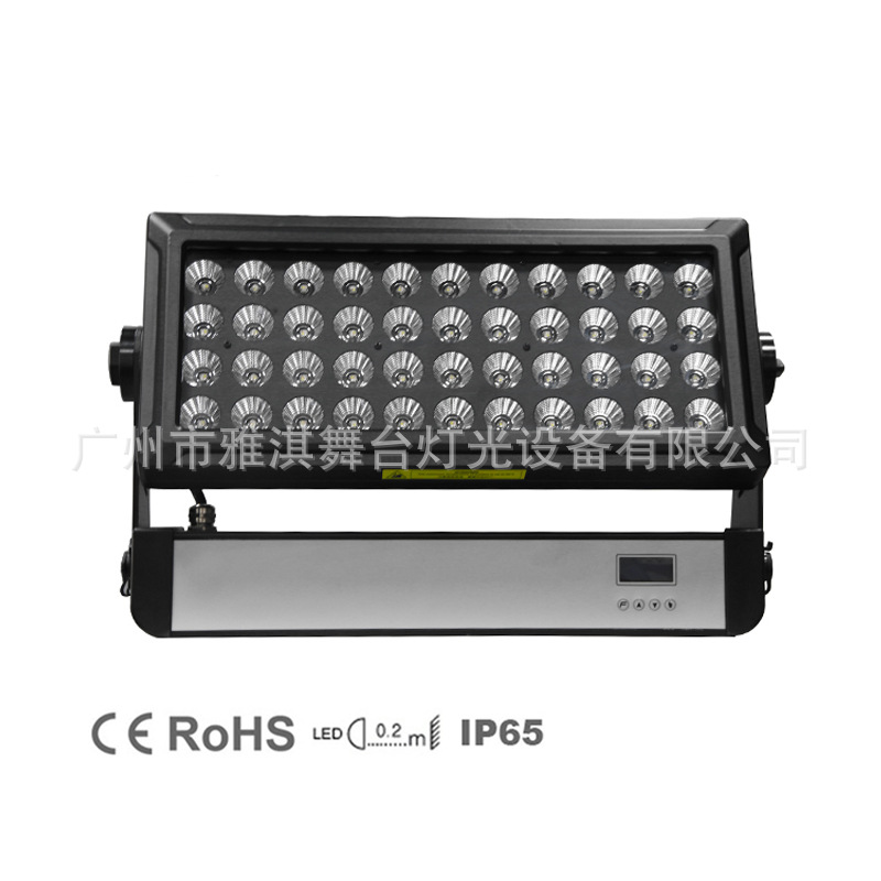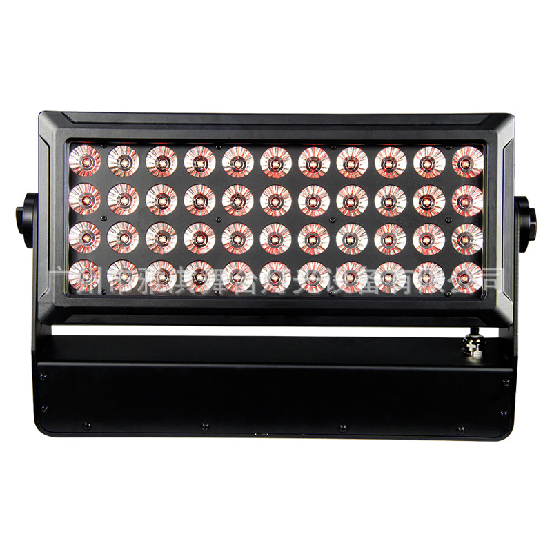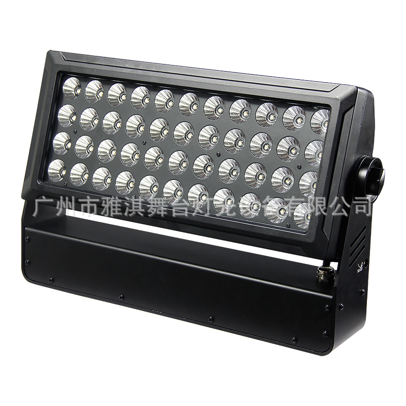 VK-LM4410IP QW为全铝合金结构,无风机,利用铝合金散热体自然散热,静音模式设计,造型轻巧时尚,安装简单。44颗10W四合一RGBW LED为光源,出光光束角度25°,具有丰富的混色配搭,如此强大的功能使其成为中小型文艺演出.舞台的照明.背景染色..酒吧.景观照明等场所的理想灯具选择。44颗 RGBW LED 是一款 WASH,具有可选的三种铺光角度,也拥有均匀的铺光效果,RGBW四色可自由无限地混合,防水IP65的级别可满足于户外的使用要求,配合可调的倾斜角度能满足很多不同场合的应用要求,比648 具有更好的照度,光束感更强:全铝合金防水结构,造型时尚、大方,安装简单。采用44颗10W四合一RGBW LED为光源,出光光束角度25°,每个光源可以单独控制,合理的LED布局让投射的光斑更均匀,混色更,投光距离更远。额度电压:AC90-240V, 50/60HZ额度电压:450W,功率因数PF≥0.95产品型号:VK-LM4410 IP QW光源系统:40*10W RGBW 4合1高亮度LEDs使用寿命:50,000 小时寿命光束角度:25°, 35° 透镜角度可选颜色系统:RGBWA+UV混色系统和彩虹效果 创造出无限动感,无限的色彩变幻调光系统:0- 32位线性调光,高光输出,低眩光电子频闪:1-20次/秒频闪灯头角度:170° 头部垂直可调节角度DMX通道:4/10 DMX 通道模式效果:4种内置自走程序,6 种调光模式外壳:采用高强度压铸铝、拉铝防水等级:IP65安全保护:静音防水风机,智能调速温度智能保护,温度传感检测,智能调整光源功率;确保LED的使用寿命安装配件:2 个快速锁孔位,可单个或者两个进行安装立地式和悬挂式安装方法两侧配有安全绳挂孔IP65三芯DMX进和出,IP65电源线进和出产品尺寸:500*300*130mm产品重量:10.75kg