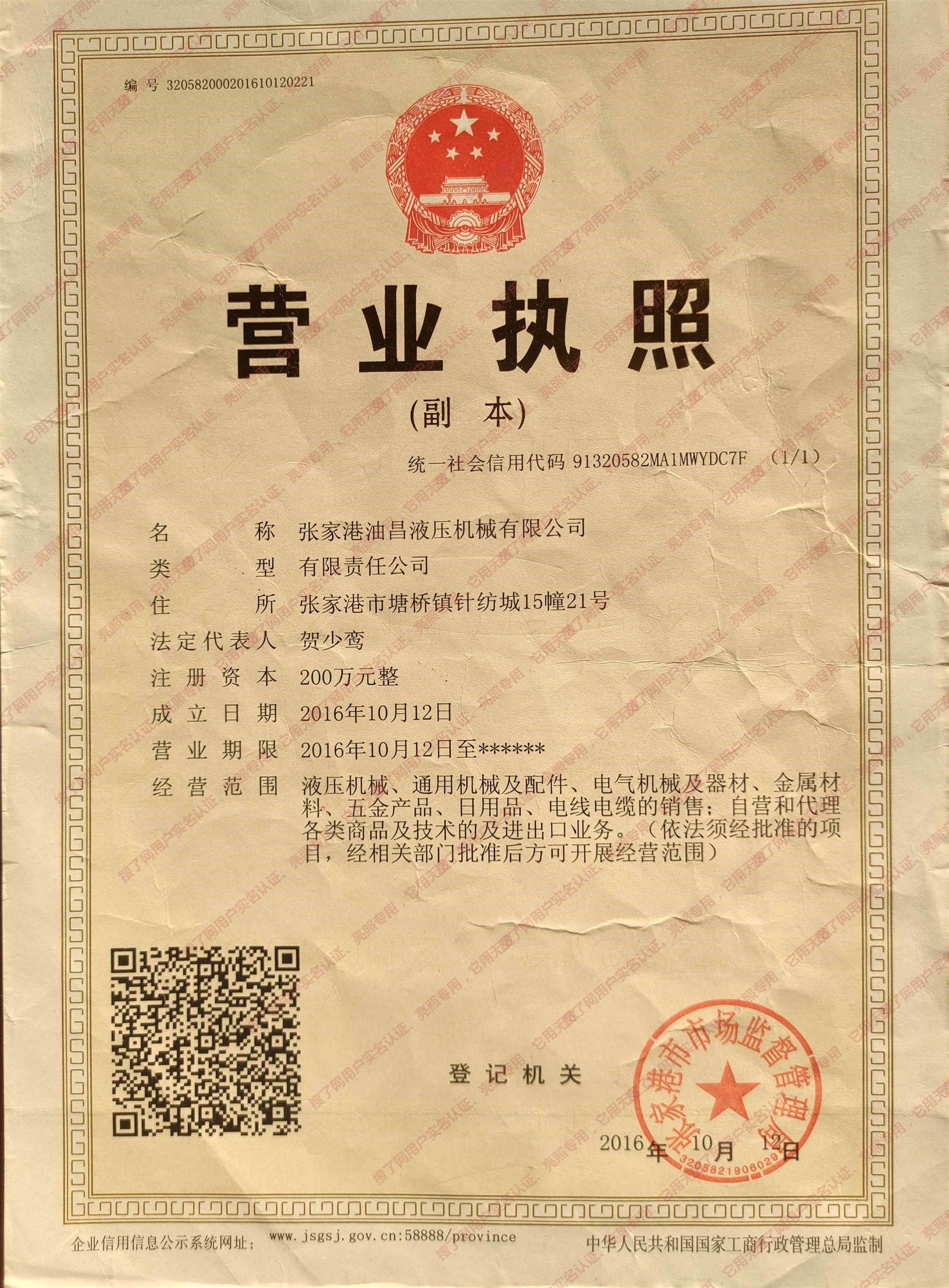张家港油昌液压机械有限公司