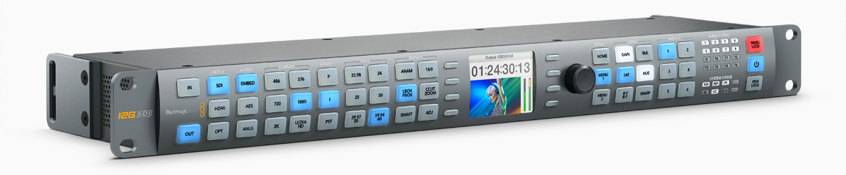 如今,您能更便捷快速地找到需要的工具来进行调色和格式转换,并更改宽高比!Teranex转换器的前面板和多功能菜单按键设计十分符合逻辑,您可以通过内置的Proc Amp控制调整亮度、饱和度、色相、黑电平、R-Y/B-Y色差、锐度等参数。转换器的前面板集成了LCD显示屏,因此即便处于直播状态和活动现场,您也可以胸有成竹地进行调整。