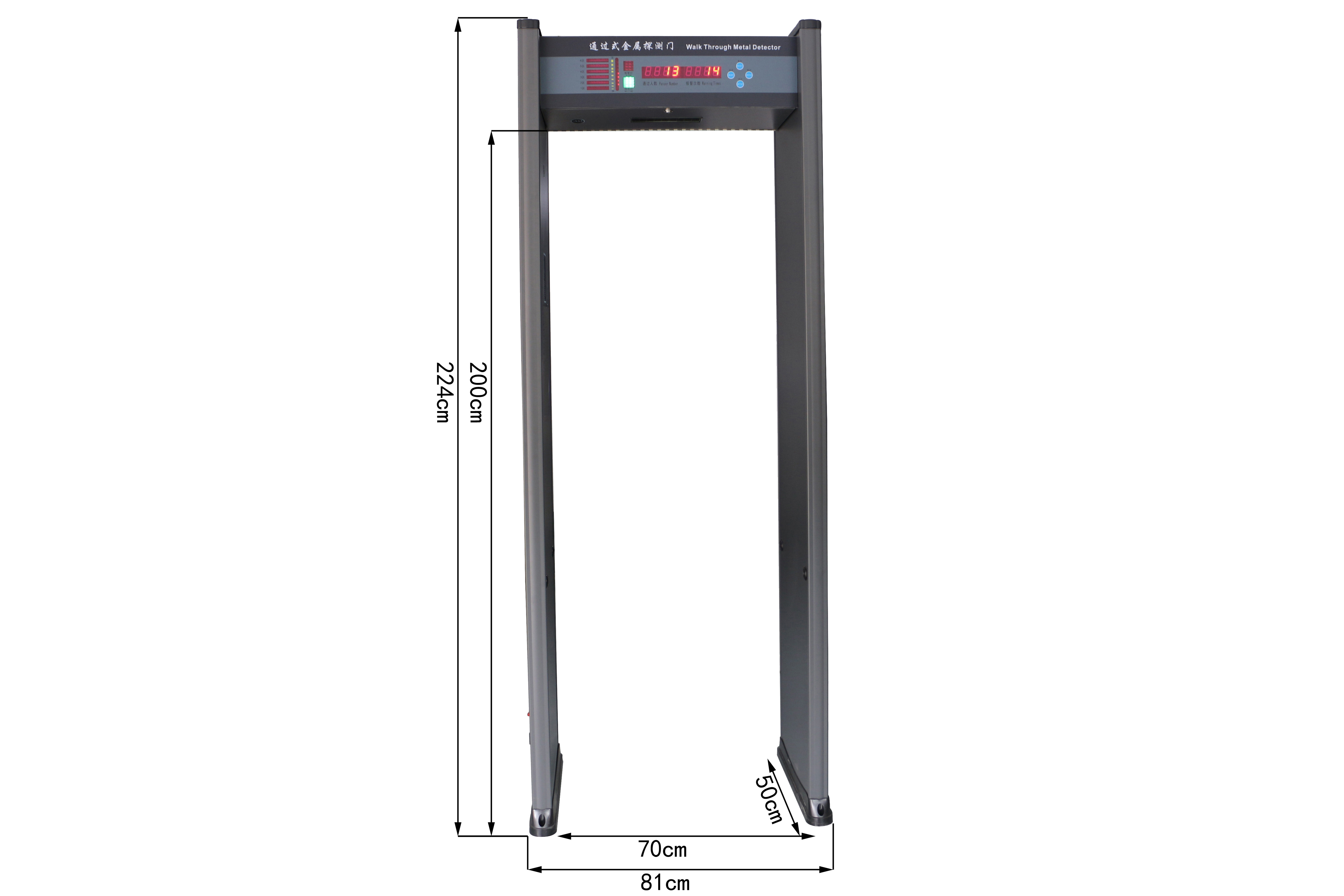 声光报警,通过柱门头超亮LED报可准确显示人体相应高度藏匿的违禁物品。