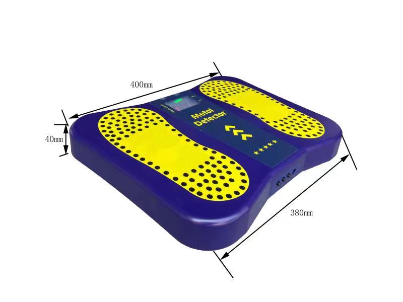 4操作简单,体积超薄超小,便携。 4可单脚,双脚任意探测。 4环境适用能力强 4可以自动识别是否有金属,并报警 4对被安检人员的站姿,站立时间无要求 4有备用电池,环保、安全,重复充电使用 4在光线较暗环境中有障碍物提醒LED指示,防止行人碰撞 4数码显示报警计数
