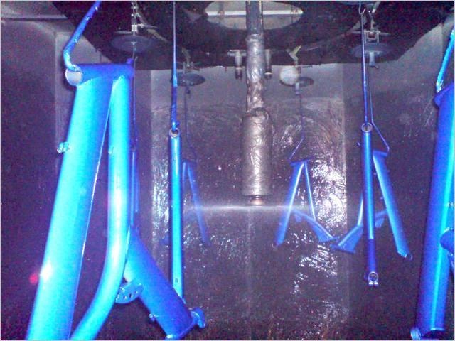 Ω静电喷漆室是利用高速旋转的圆盘喷枪,在静电场的作用,将有油漆雾化,漆雾化,漆雾喷向工件并附着在工件上。在工件通过Ω轨道运行时连续自转,在圆盘上下运动的过程中,将工件的各个部位均匀地涂上漆摸