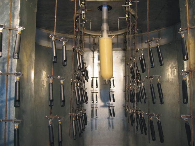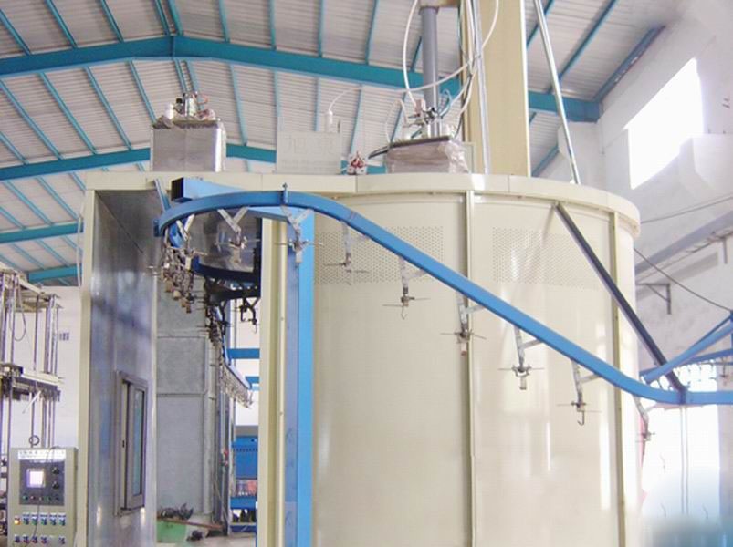 喷房+“Ω'旋被喷涂时一种效率高,适应范围广,成本低的喷涂方式,工件通过吊空输送线沿着“Ω‘型轨道围着旋倍运行,旋杯子可以根据工件的实际需求上下往复运动因工件自转,喷涂均匀,适用于不旋转有些面就难以喷涂的工件; ② 结构简单,进风量和风压均小,涂料损耗小; ③ 能耗小,运行费用低