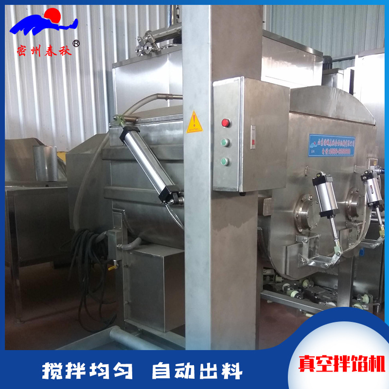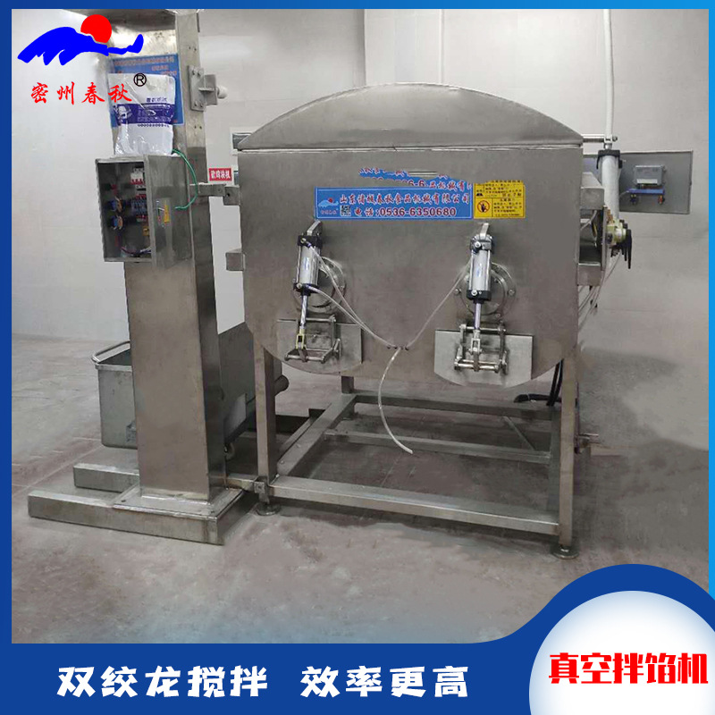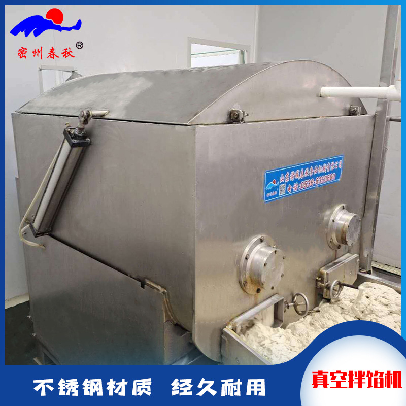 真空拌馅机对料状,粉状,泥状,糊状,浆状物皆有很好的适应性和混合效果。对块状物有较好的保型性。具有反转功能,具有自动出料功能。真空拌馅机作用|水饺全自动拌馅机价格|使用春秋真空拌馅机好处具体电话咨询,并免费提供工艺技术,提供实地厂家生产参观,欢迎新老客户来共同创业,共同发展。