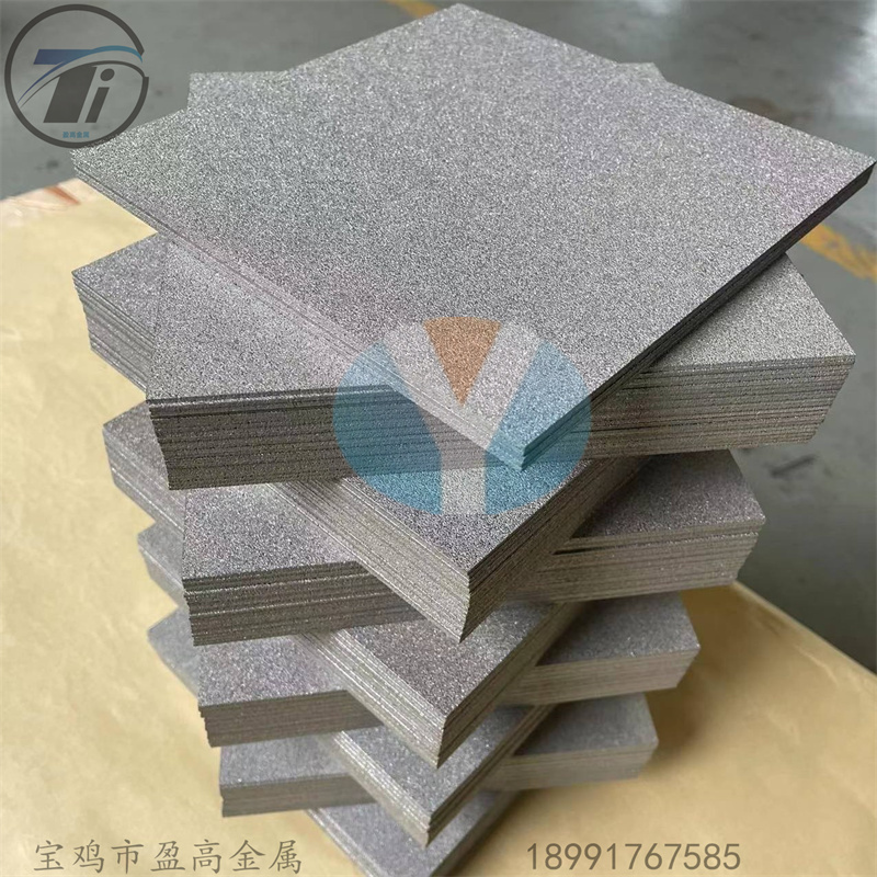 多孔钛板是采用0级海绵钛钛粉进行轧制后进入高温烧结炉进行真空烧结,后冷却成型,传统轧制板材工艺,规格可达500mm*800mm,可根据使用自行自由裁切。