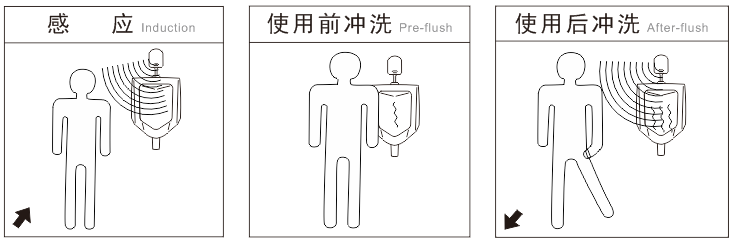 自动冲水:通过感应部件,使用小便斗时会自动进行冲洗。