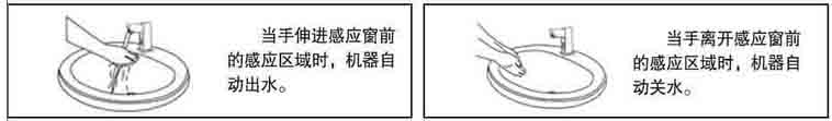 技术指标参数: ① 供电电源:d.c 6V/~220V(根据不同需求选用:直流6V电池或交流220V电源供电) ② 静态功耗:≤0.5mW(D.C )/≤0.6W(~) ③ 适用温度:0 — 55℃ ④ 感应范围:28-38cm(对29.7cm×29.7cm) ⑤ 进出水管径:(DN15)G1/2″ ⑥ 适用水压:0.05MPa - 0.7MPa ⑦ 龙头体尺寸:55x143x128mm ⑧ 执行标准:CJ/T 194-2004 功能与特点: ① 节 水:通过感应部件,手一伸水即来,手一收水即停。 ② 卫 生:手不需接触金属物件,出水由感应器自动完成。达到了方便、卫生、有效避免细菌交叉感染。 ③ 省 电:直流产品使用4节5号碱性电池时,每天使用300次,2年内无须更换电池。 ④ 维护方便:内置过滤网的设置可方便清除水路中沙石等固体物质。 ⑤ 美观新颖:方圆形结合设计,迎合现代简单生活潮流。 ⑥ 超时功能:当连续使用时间超过1分钟,机器将自动关水,避免因异物长时间在感应范围内造成水资源的浪费。 ⑦ 内置冲水电磁阀、柔水器,出水均匀流畅,使用方便 使用说明: