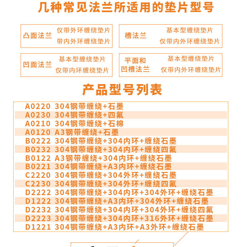 4、绝不能用地材质垫片取代高材质垫片。避免材料腐蚀、磨蚀或其它原因造成垫片失效。