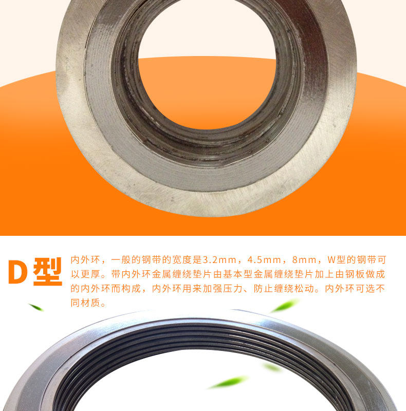 3、在高温、深冷或冷热频繁交变、振动较大、强腐蚀介质等恶劣工况条件下,用于平面法兰和凸面法兰的垫片好加装合理材料的内环。