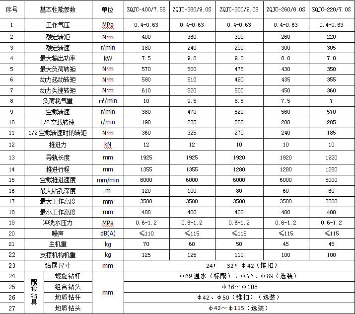 气动架柱式钻机产品分类: ZQJC气动架柱式钻机