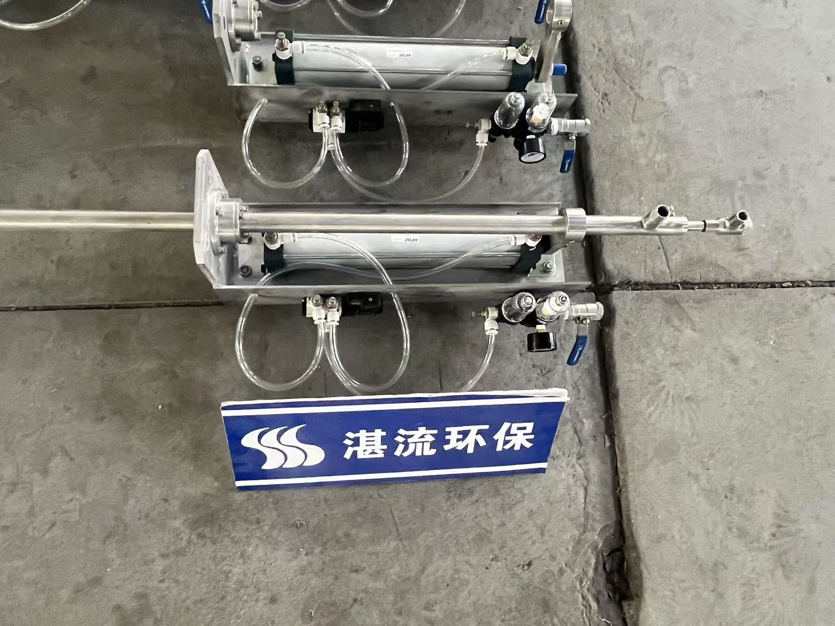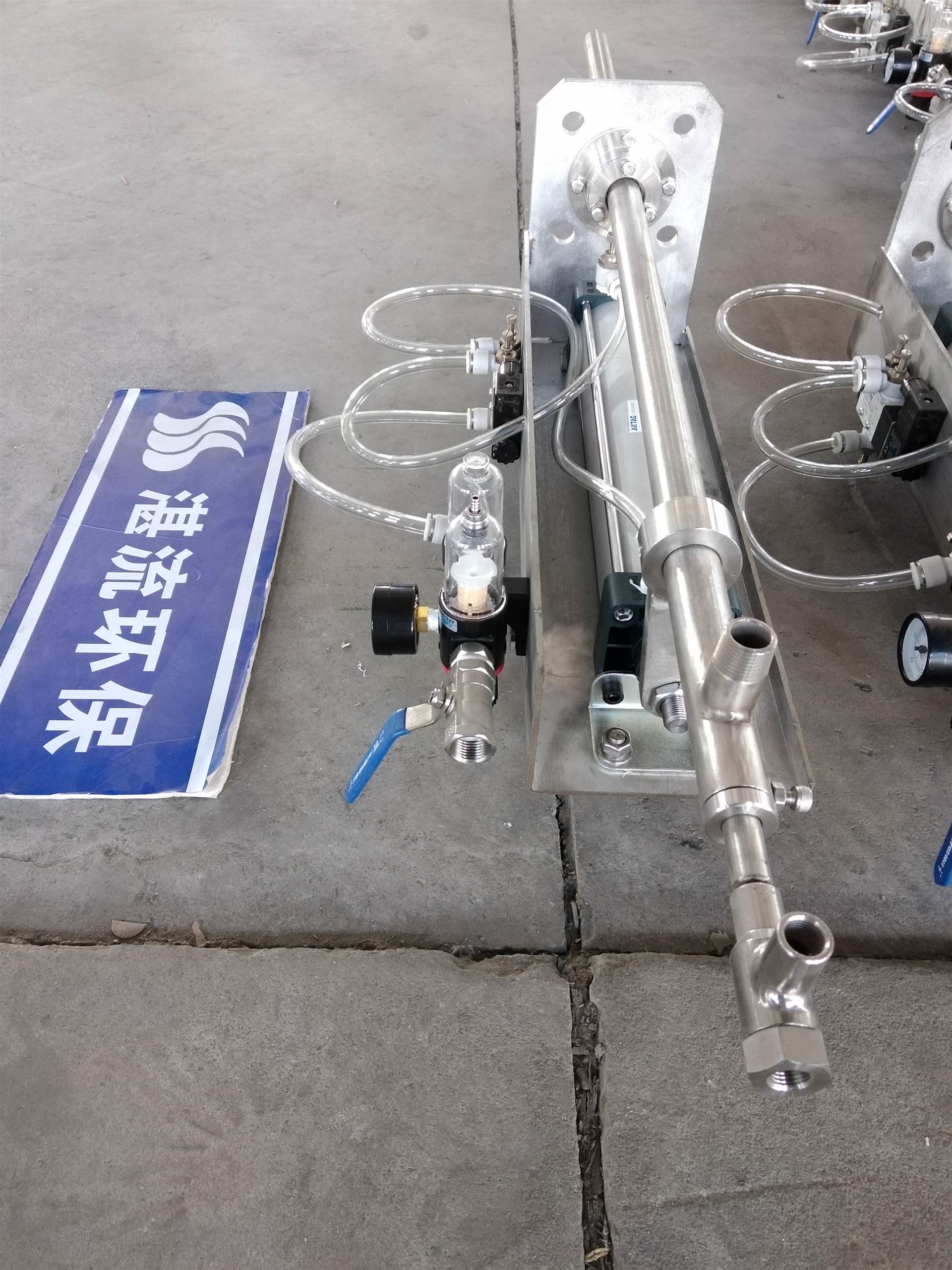 自动伸缩脱硝喷枪采用气助式双流体结构,枪体与喷嘴采用螺纹连接,喷嘴需要更换时,不需要连同枪体更换;喷头部位采用碳化硅保护套或耐磨合金喷涂保护套来或激光熔覆保护套来保护,喷枪采用尾部雾化技术,三次雾化,雾化更精细。气动脱硝喷枪采用自动伸缩装置,可现场就地控制或中控远程控制,在使用时自动伸到炉膛内部喷雾,不使用时自动退出炉膛