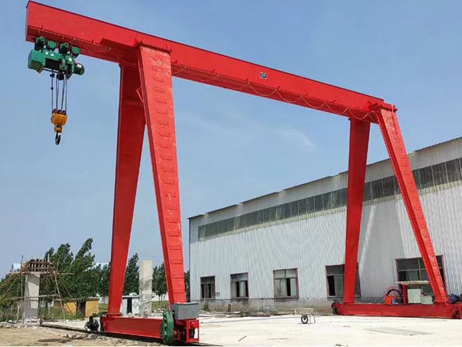 (1)电动单梁葫芦:葫芦本体可沿龙门吊主梁的工字钢轨道左右运行,配合大车行走,实现huo物的三维空间吊运,是单梁龙门吊最常用的类型。