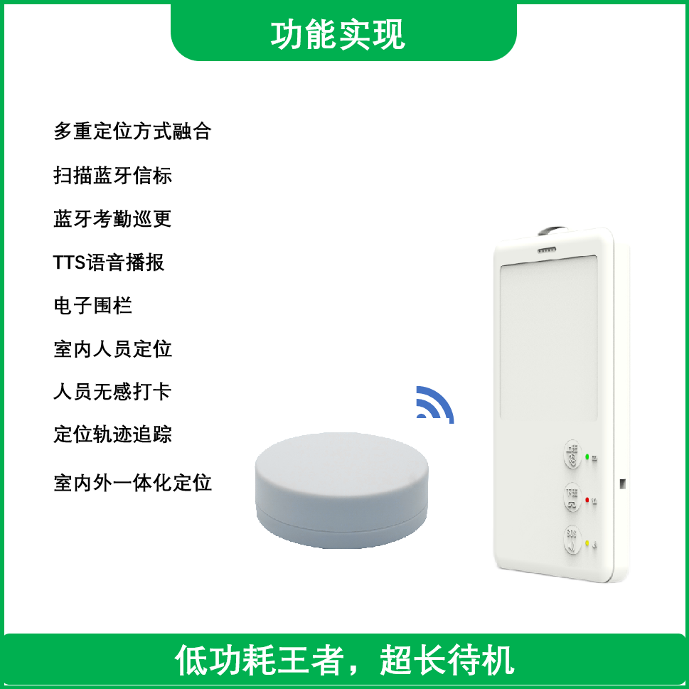 W-H2是一款支持北斗三号的、双频北斗卫星定位电子工牌,集成wifi定位、蓝牙信标定位、UWB定位、基站定位、多重定位于一体,兼容移动、联通、电信三大运营商CAT1通信网络,支持JT808协议,具备定位、语音通话、一键报警、短信配网、智能打卡、电子围栏、轨迹回放、空中升级等功能,极低的待机功耗控制使得W-H2电子工有长达一个月的超长待机的续航能力。