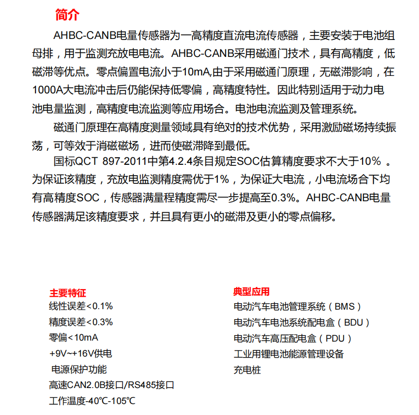安科瑞直流电流传感器AHBC-CANB500电池组母排充放电监测