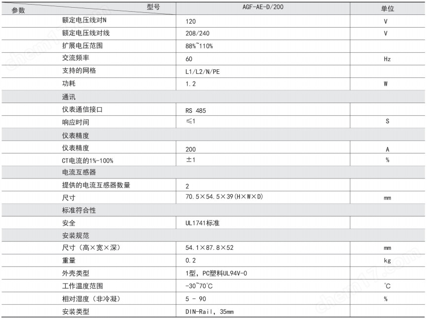 AGF-AE-D/200智能光伏采集 逆流检测仪表是专门应用于智能光伏汇流箱,用于监测光电池阵列中电池板运行状态,组串电流测量,汇流箱中防雷器状态采集、直流断路器状态采集、装置带有RS485接口可以把测量和采集到的数据和设备状态上传。