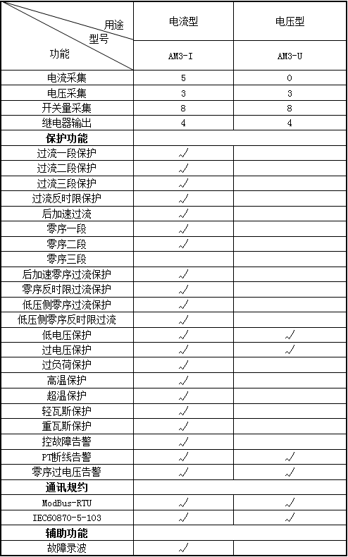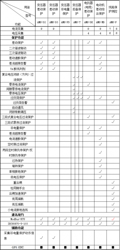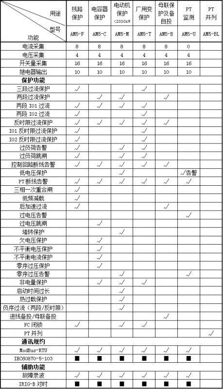 注:√表示具备此功能,■表示可选功能, 空白表示无此功能。