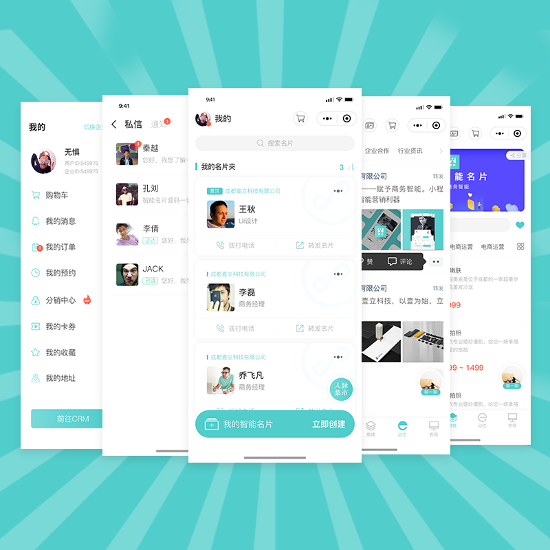 壹脉销客智能名片里面包含了名片、商城、咨询和,信息量非常大。名片里有您的基本信息,可以让客户更容易联系到您。商城可以让您的产品实现在线交易,咨询可以让客户看到贵公司的动态,可以让客户了解公司基本情况。