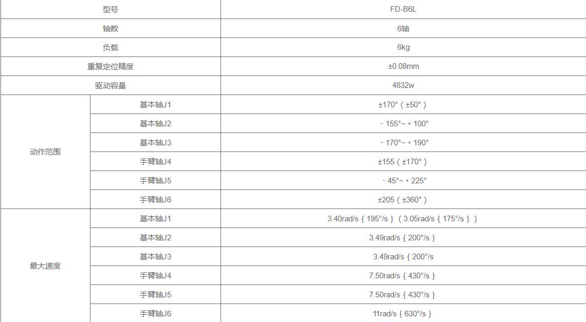 可搬重量为6KG,可搭载各种焊枪和传感器,非常适用于搬运用途。