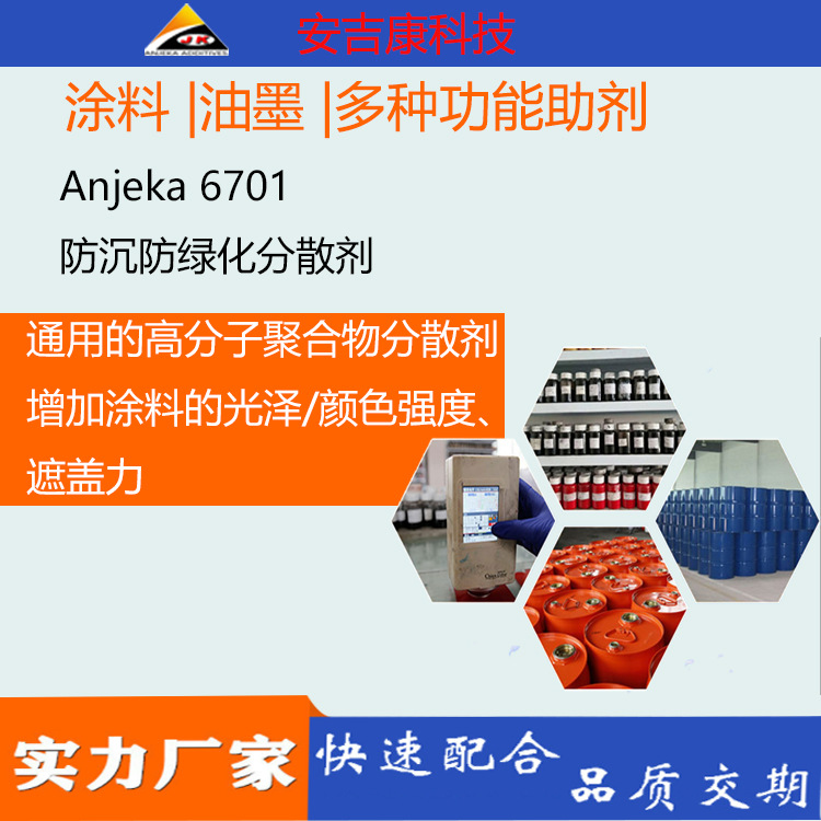 Anjeka-6710 系含酸性基团的共聚物溶液,主要适用于溶剂型涂料和油墨体系中,针对无机填料润湿分散性能优异并提供有效防沉性能。