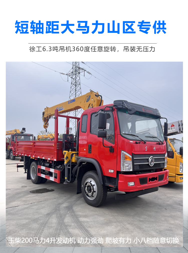 徐工6吨随车吊 东风K3山区短轴距4米2货箱自备吊 风力发电转运
