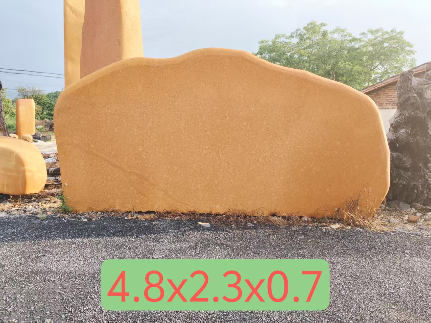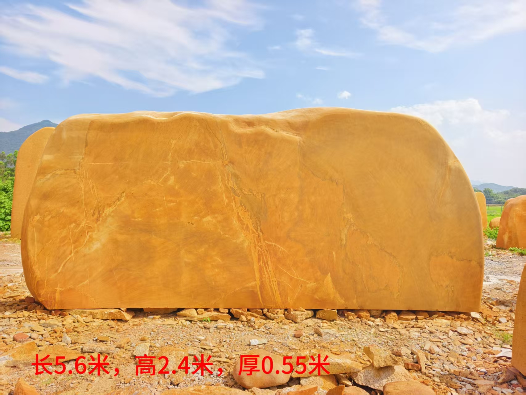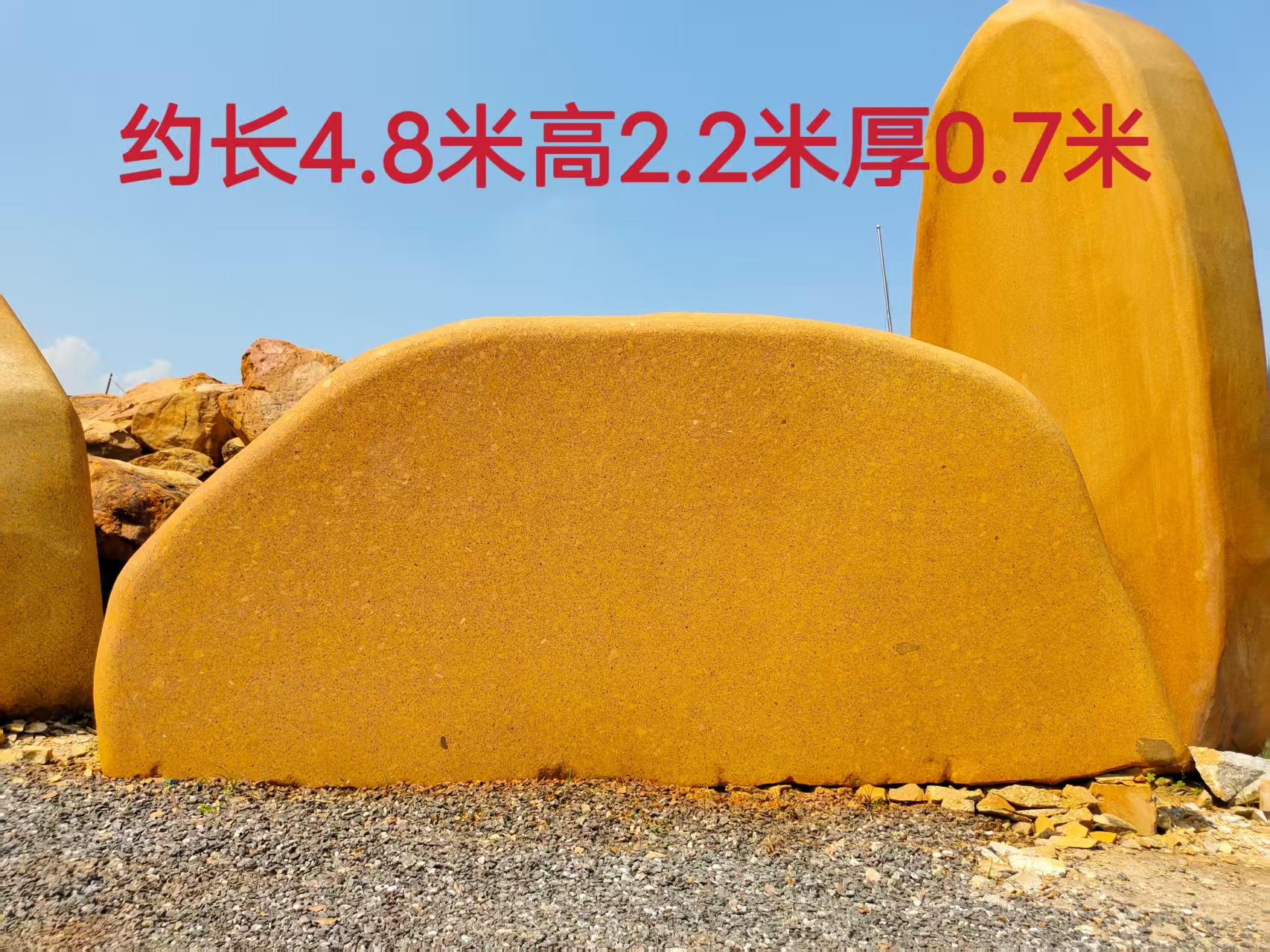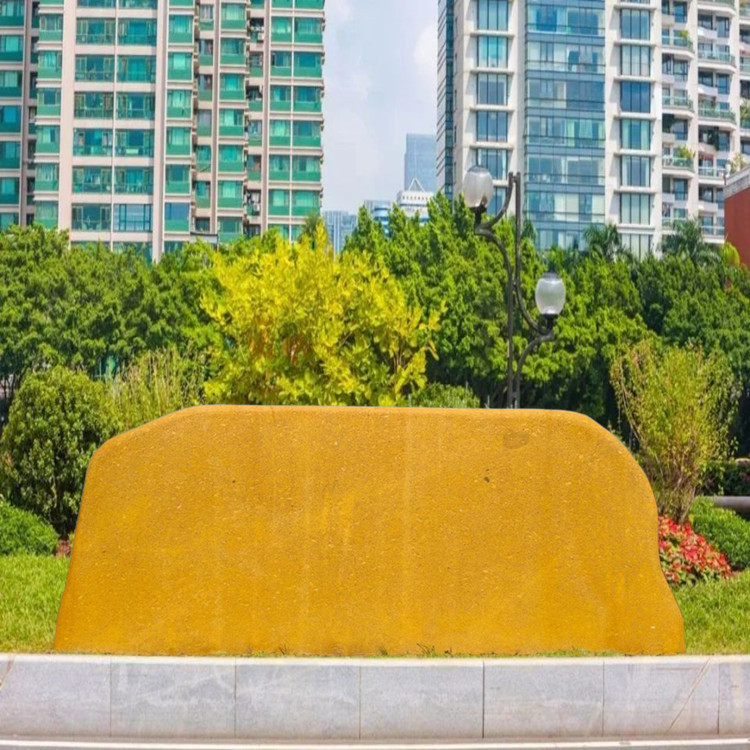 公园就是一幅画,是放黄蜡石的场地,但放在什么地方,怎么放,也是有讲究的。黄蜡石主要起点睛之笔,放的地方要融于自然,为自然景观锦上添花。这和做盆景的道理是相通的。放在硬邦邦的水泥地或花岗岩地,都很不协调。至于在黄蜡石上刻字,那要慎之又慎了。笔者以为不要刻,免使它的美受损。要刻的话要把黄蜡石看作一座岩山,一幅的图画。