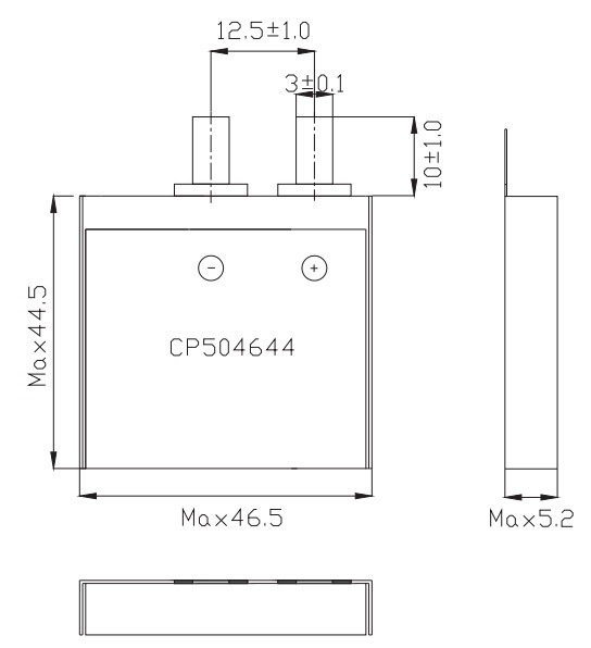 | CP504644 | 44.5×46.5×5.2 | 17 | 3.0 | 2300\5.0 | 1000 | -20 ~ +60 | 1.8 | |