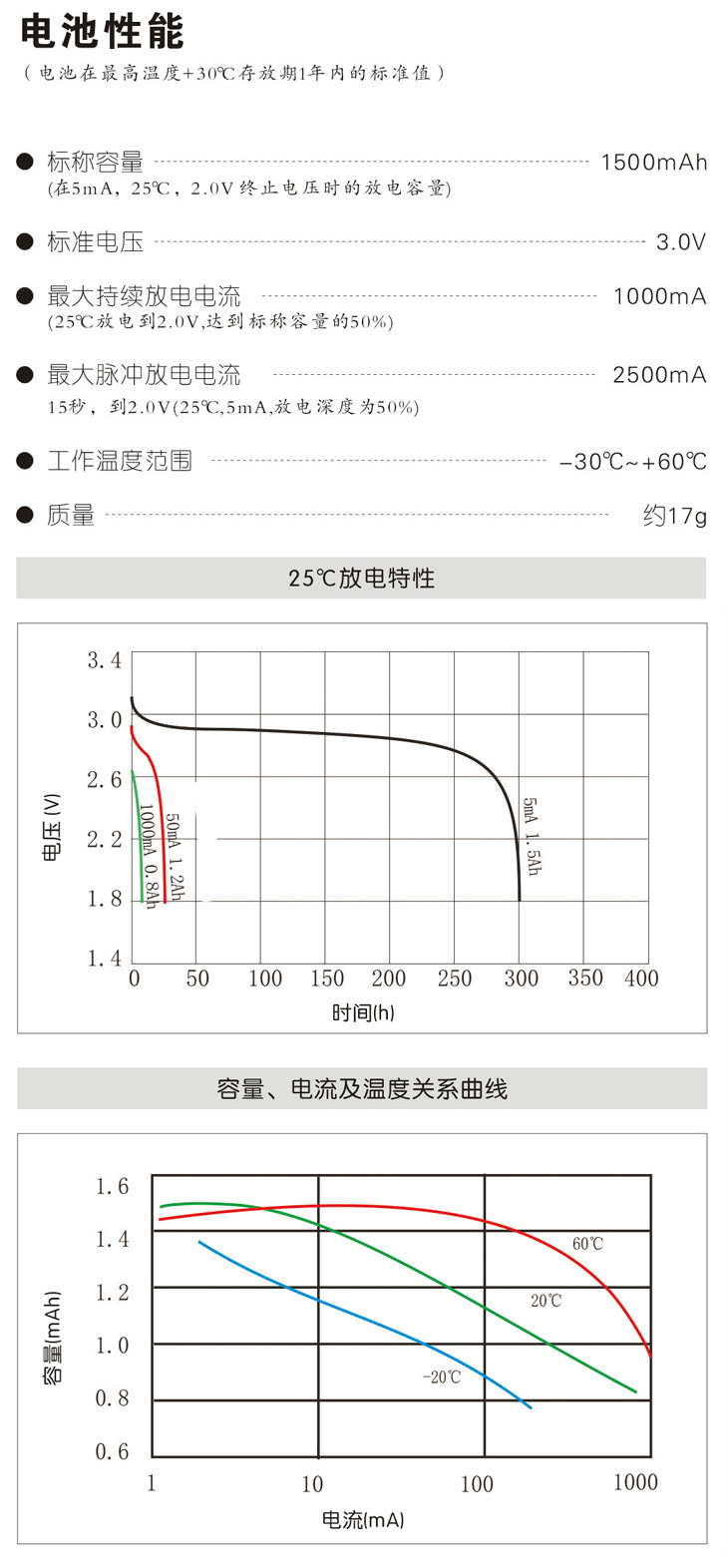 *工作电压高而且稳定。随负荷的变化,工作电压保持在2.7~3.0V之间。
