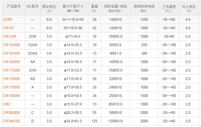 孚安特锂锰柱式功率型电池一览,详细可以在店铺类搜索相关型号
