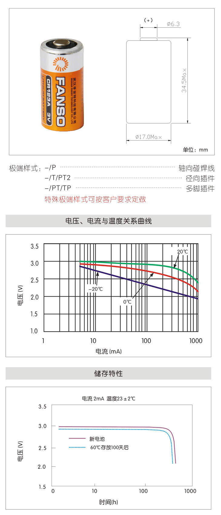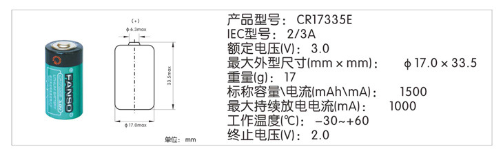 CR123A,半密封锂锰电池,FANSO一次锂电池,3V锂电池厂家