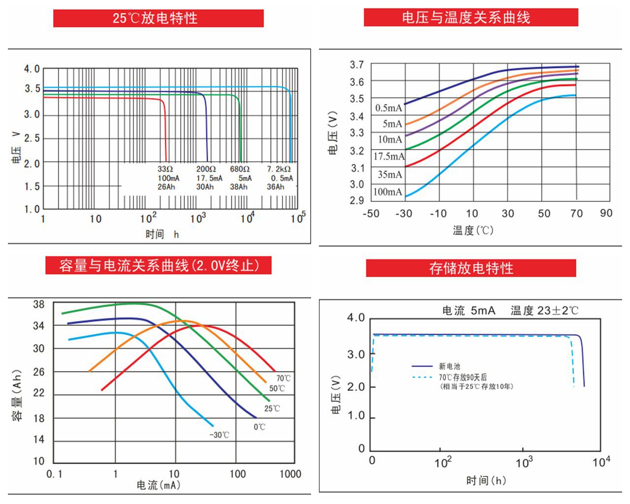 | ER14250H | 1/2AA | Ф14.5×25.2 | 9 | 3.6 | 1200\1.0 | 25 | -55 ~ +85 | 2.0 |