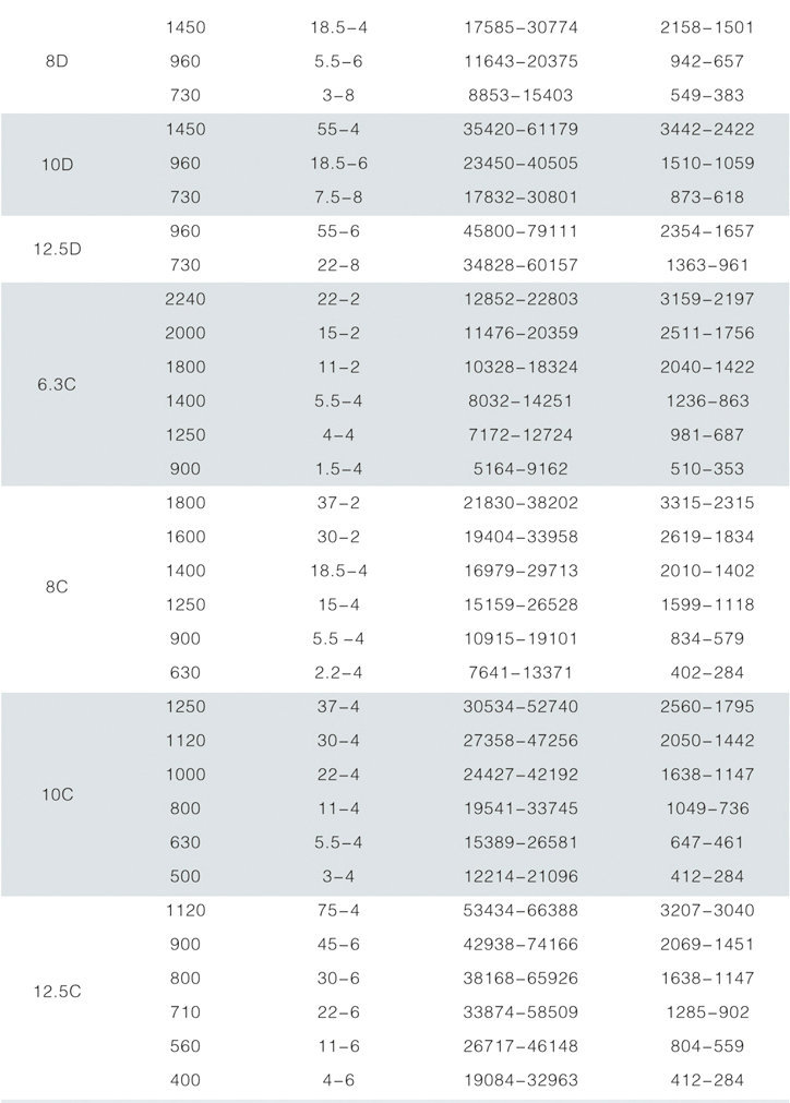 4、风机的传动方式:有A、B、C、D四种,№2.8-5采用A式,以电动机直联传动,风机的叶轮、机壳直接固定在电动机轴和法兰盘上(电动机用D2/T2型);N06.3-12.5采用悬臂支承装置,又分为C式(皮带传动皮带轮在轴承外侧)和D式(用联轴器联接传动)两种传动方式;№l6、20为B式悬臂支承装置,皮带传动,皮带轮在轴承中间。