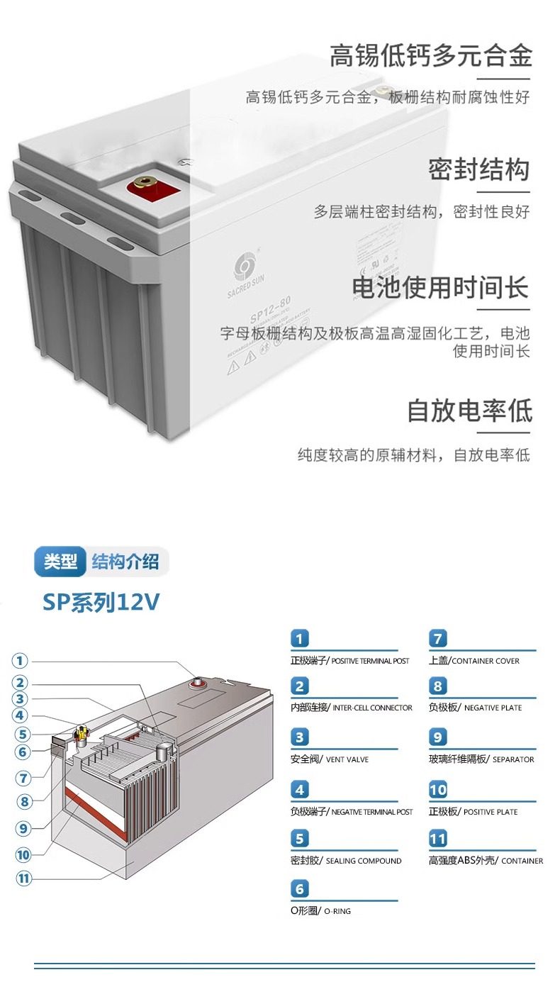 圣阳蓄电池SP12-40不间断12V-40AH太阳能光伏储能行发电照明