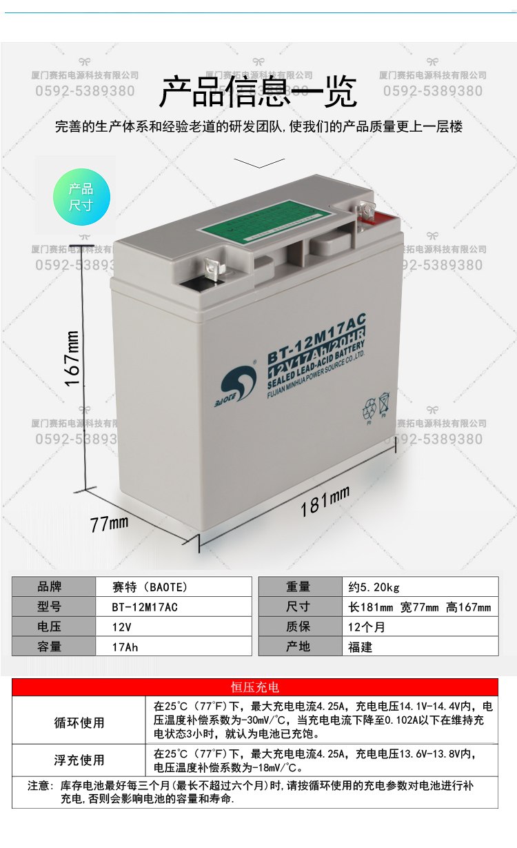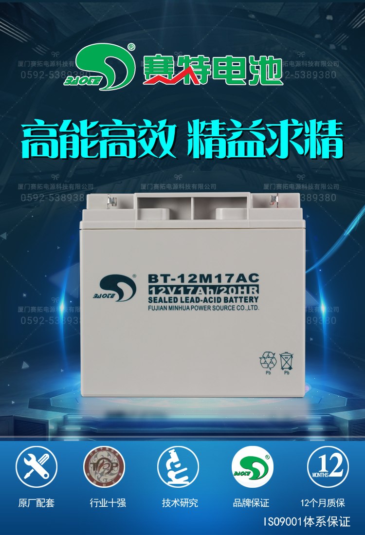 赛特蓄电池BT-12M17AC型号免维护铅酸电池12V17AH机房应急专用设备