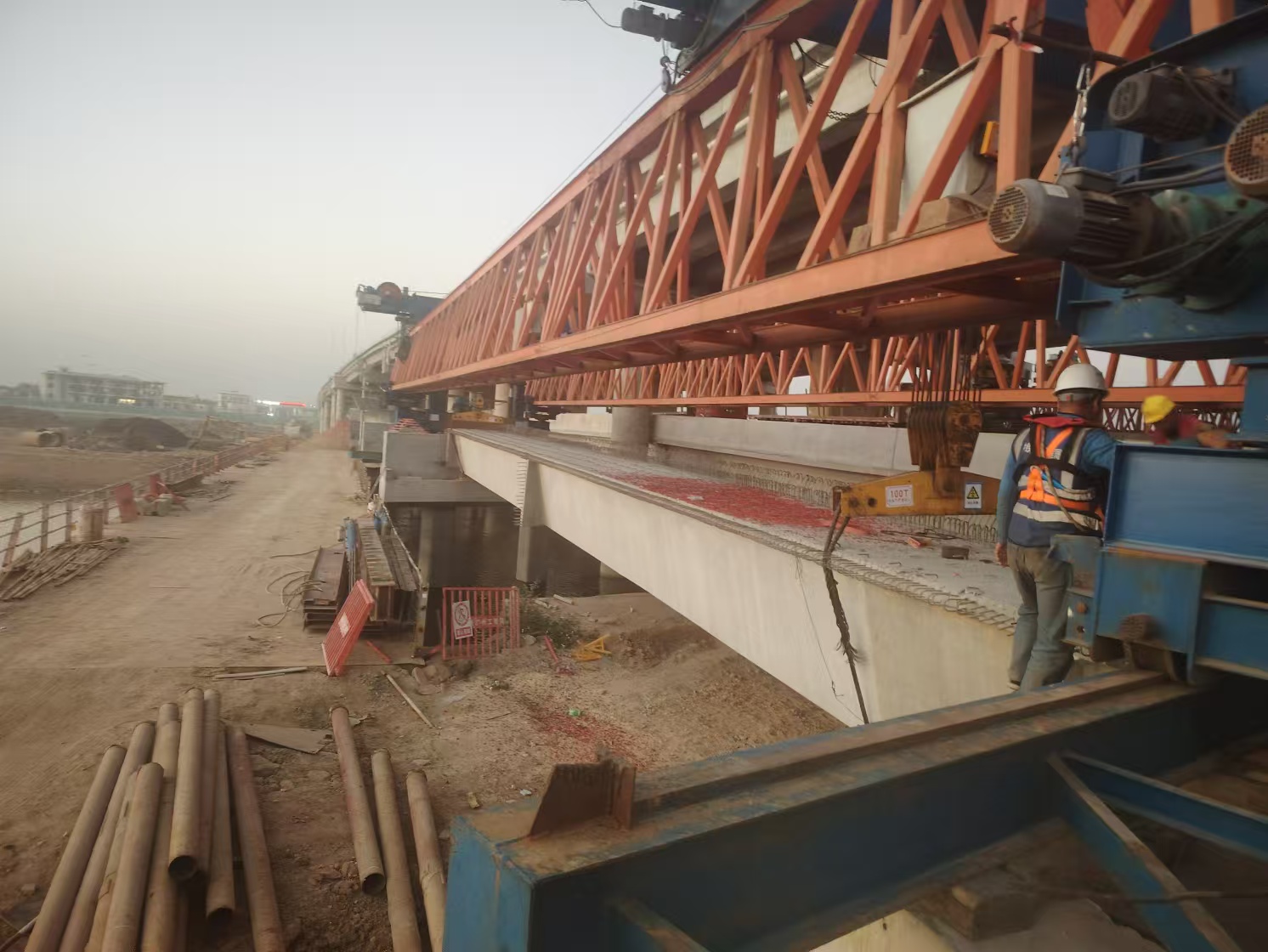 1.步履式架桥机起整机可携边梁一次横移到位,不仅安全可靠且简单快捷;架桥机的主梁及主要的联接结构都采用销轴连接,不但牢固可靠,拼装、拆卸尤为快捷(打一个钢销仅需几分钟),为工程的进度减少了不少时间。