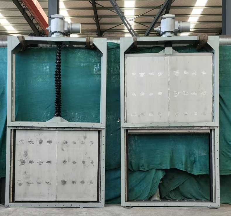 输送系统进出料口用到的闸阀板阀为了配合输送系统工作,还可以通过加装气缸或者是电动装置驱动阀门动作,使用气缸驱动称气动闸板阀,使用电动装置驱动的叫电动(电液)闸板阀,此类阀门可以根据工作需要设定常开或者常闭,在控制系统指令下自动运行。