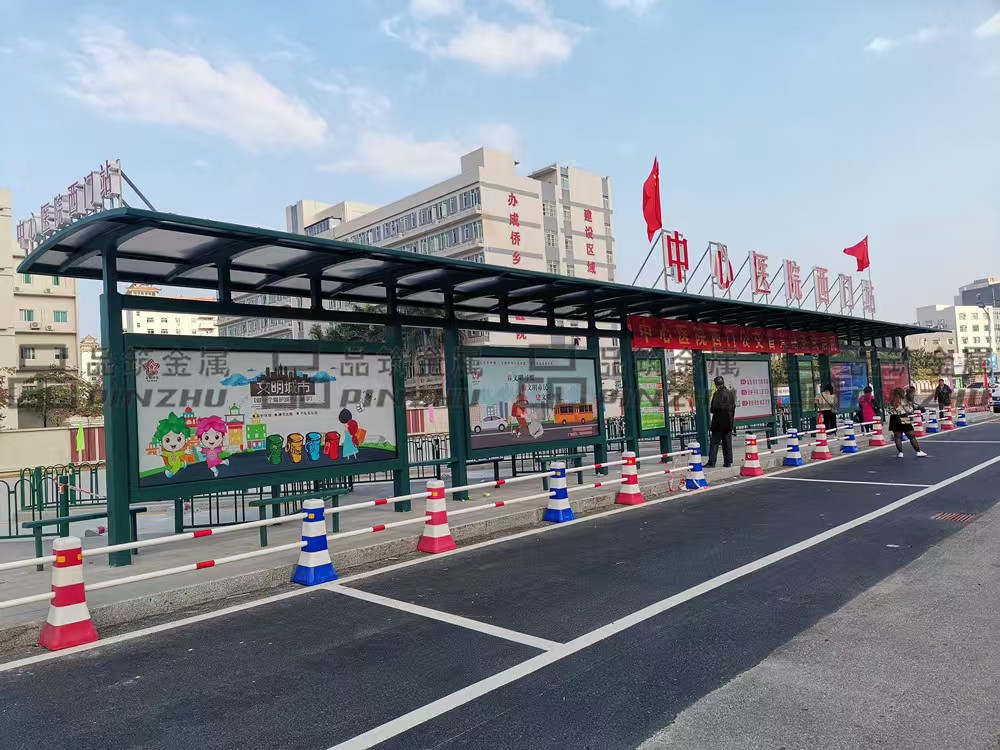 3、柱与灯箱、顶部承托弓之间采用螺栓联接。