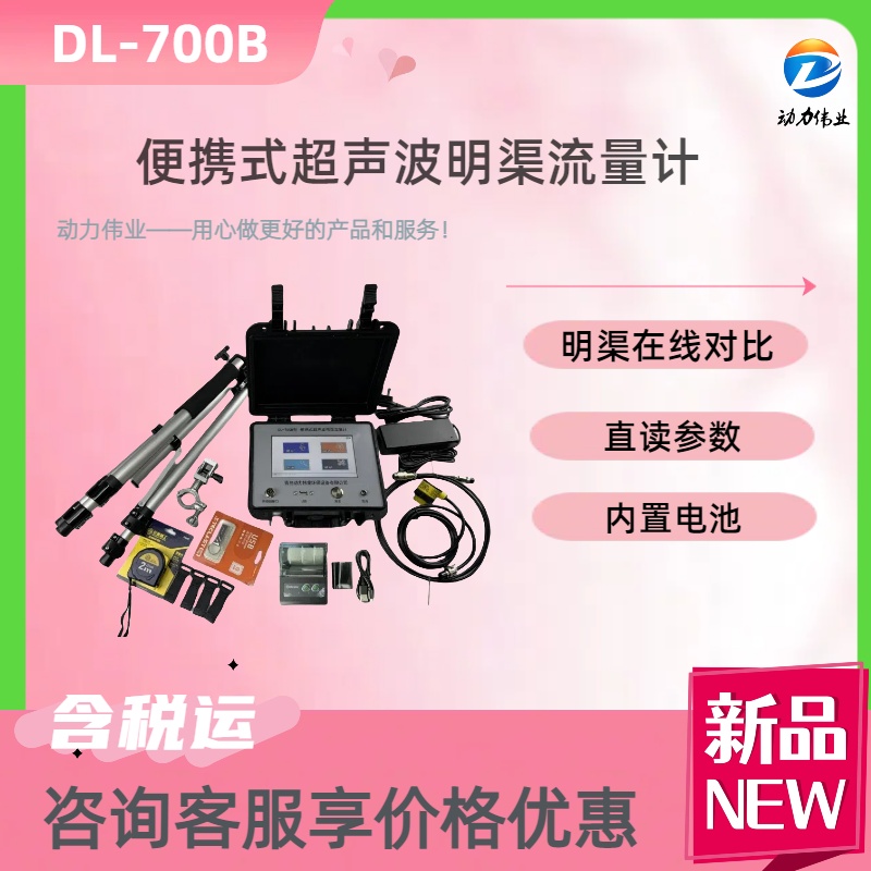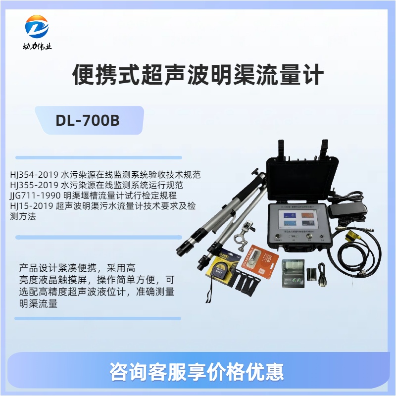 便携式明渠流量计DL 700B是一款常用于水利、环保、农业等领域的流量测量设备,适用于明渠(如河流、沟渠、排水管道等)的流速和流量监测。以下是关于该设备的关键信息总结: