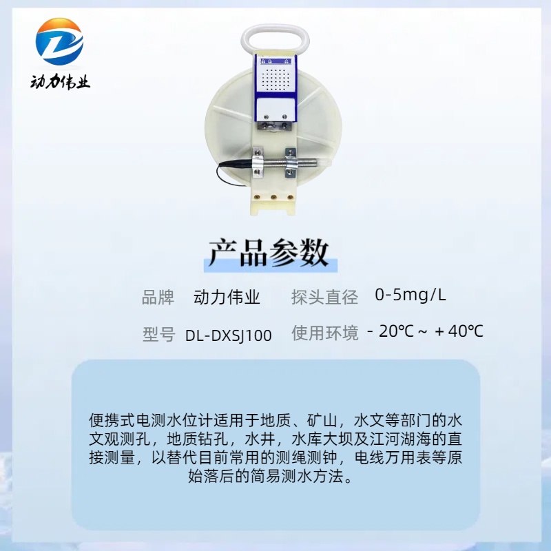 DL DXSJ100型便携式地下井深水位两用仪是一种用于测量地下水井深度和水位的设备,通常应用于水文地质勘察、环境监测、农业灌溉、矿山排水等领域。以下是关于该仪器的综合介绍: