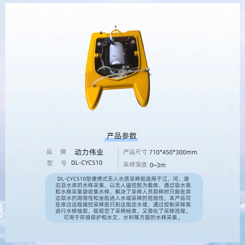 便携式水质无人采样船DL CYC510是一款专为河流、湖泊等水域设计的高效采样设备,其核心优势在于便携性、自动化及多功能性。以下是针对该产品的详细分析及建议: