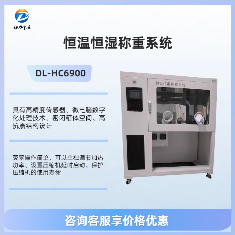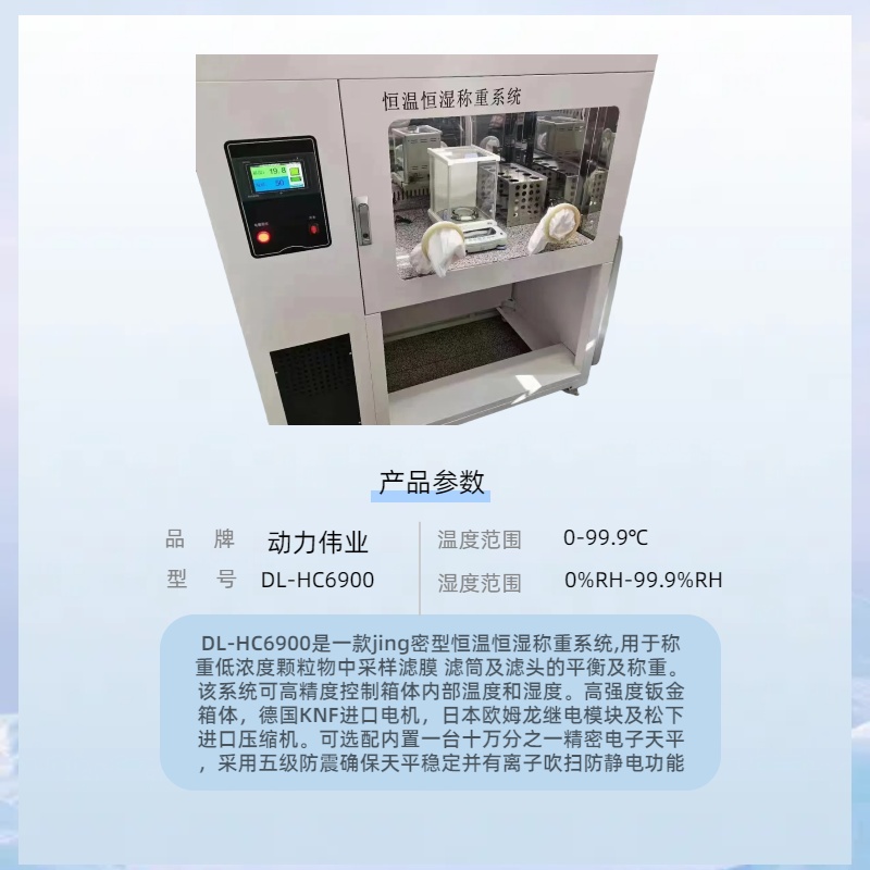 DL HC6000W 是一款高精度的台式恒温恒湿称重系统,主要用于实验室环境中对样品进行恒温恒湿条件下的称重。广泛应用于环境监测(如大气颗粒物称重)、材料科学、制药、食品等行业,确保称重结果不受环境温湿度波动的影响。