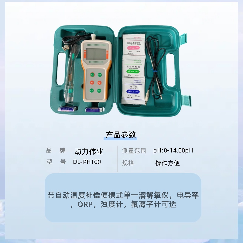 DL PH100便携式pH计是一款常见的便携式水质检测设备,具备自动温度补偿(ATC)功能,适用于环境监测、实验室、水产养殖、农业等领域。以下是关于该型号的主要特点和使用注意事项的总结: