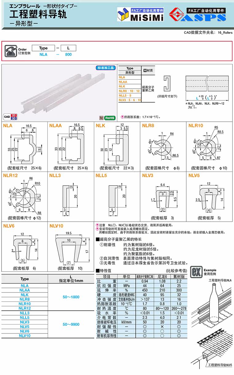 直销替换米思米怡合达塑料导轨异形NLA/NLK/NLR/NLL/NLV