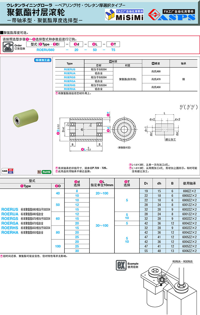 直销替换米思米怡合达聚氨酯衬层滚轮ROERUS/ROERUA/ROERGS/ROERGA/ROERHS/ROERHA