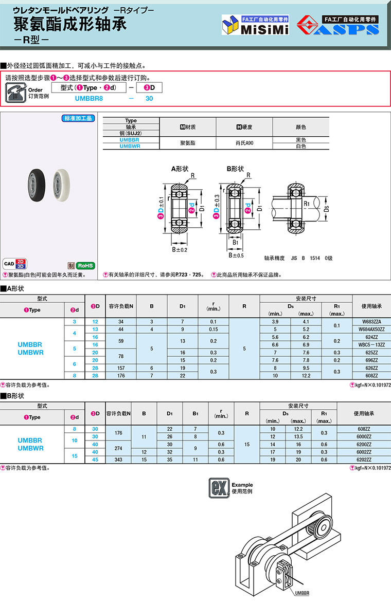 直销替换米思米怡合达聚氨酯成形轴承UMBBR/UMBWR