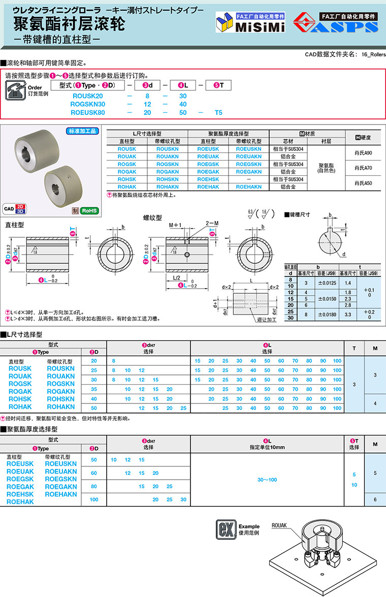 直销替换米思米怡合达聚氨酯衬层滚轮ROUSK/ROGSKN/ROEGSK/ROEHAKN