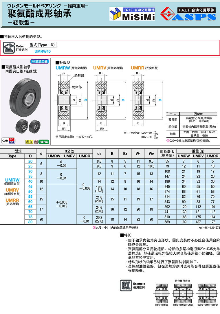 直销替换米思米怡合达聚氨酯成形轴承UMRW/UMRV/UMRR