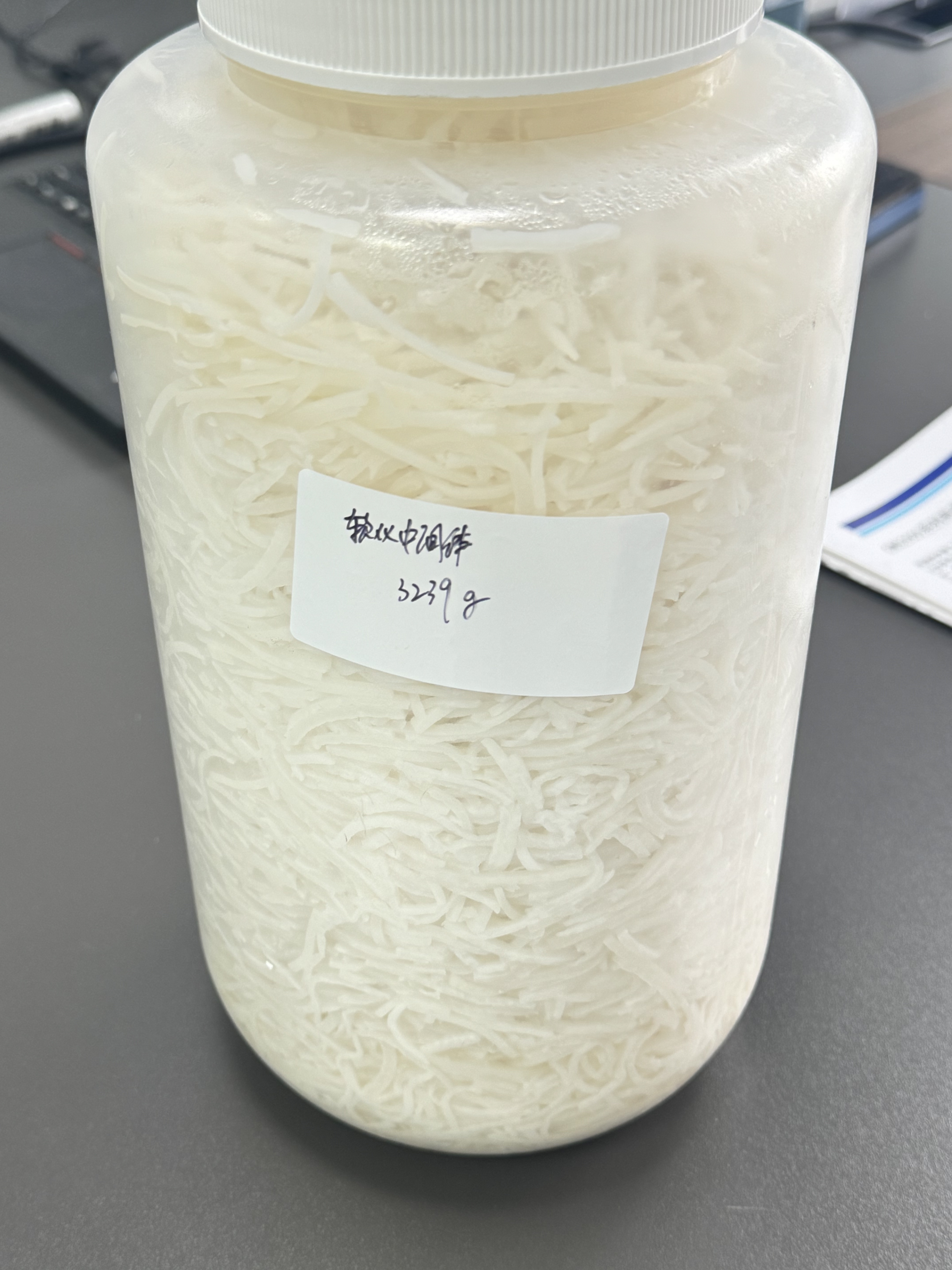 4、胶原纤维提取将处理好的半透明皮料绞碎或打碎,再经胶体磨磨成胶浆,并用适量水调整至固体含量4—6%。