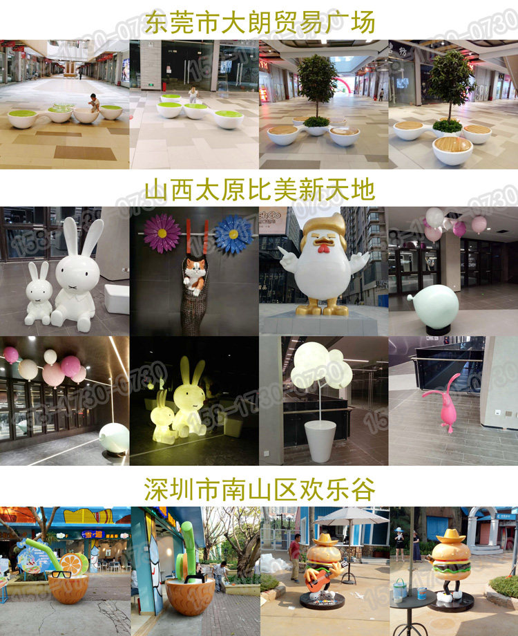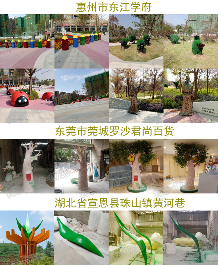 【产品要求】:在玻璃钢(树脂纤维)制作的基础上,同时可按要求任意着色、打磨明暗、描金、仿古、仿铜、仿玉等特殊表面效果,并可以通过技术处理使作品表面呈现粗犷、细腻、龟裂、自然缝隙、风化等真石效果,产品表面效果有直接油漆处理出色,金箔、银箔、电镀、仿石、仿古制作。