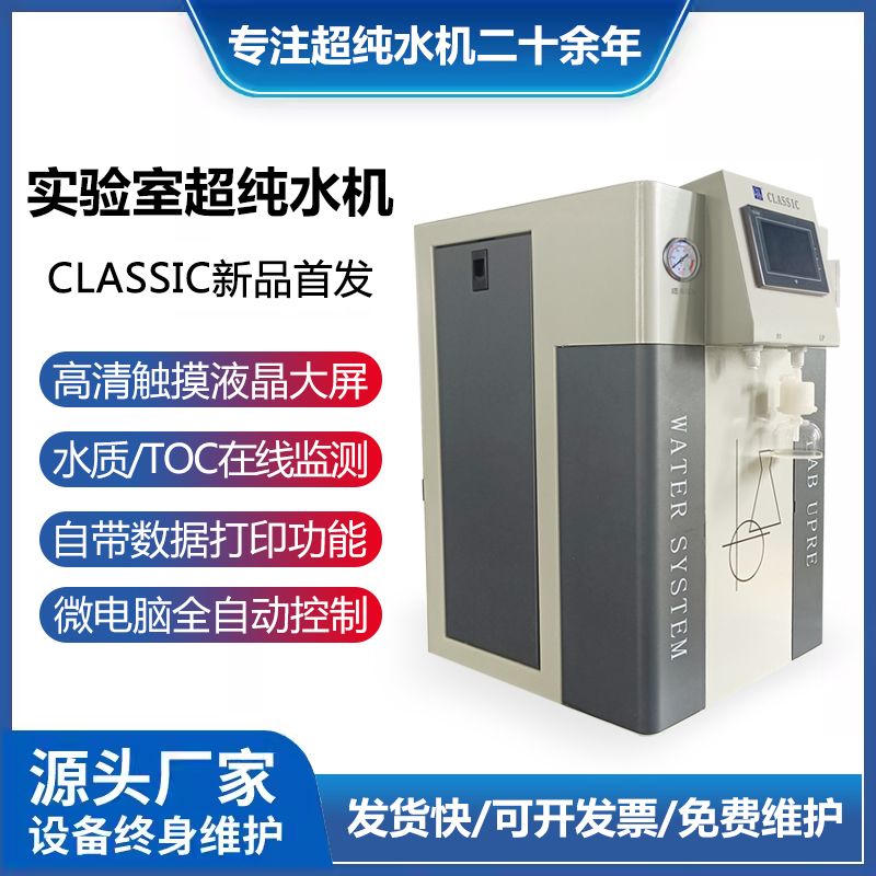 艾柯AI人工智能实验室超纯水系统EDI去离子水, 实验室专用超纯水机、纯水设备, 电阻率≥18.2或电导率≤0.055适合水源:城市自来水制 水 量:100L-200L/H出水水质:纯净水、RO纯水、UP超纯水产品配置:7寸触摸屏、双波长紫外消解仪、可加配移动取水手臂产品特点:TOC实时检测显示、全智能语音助手、远程控制