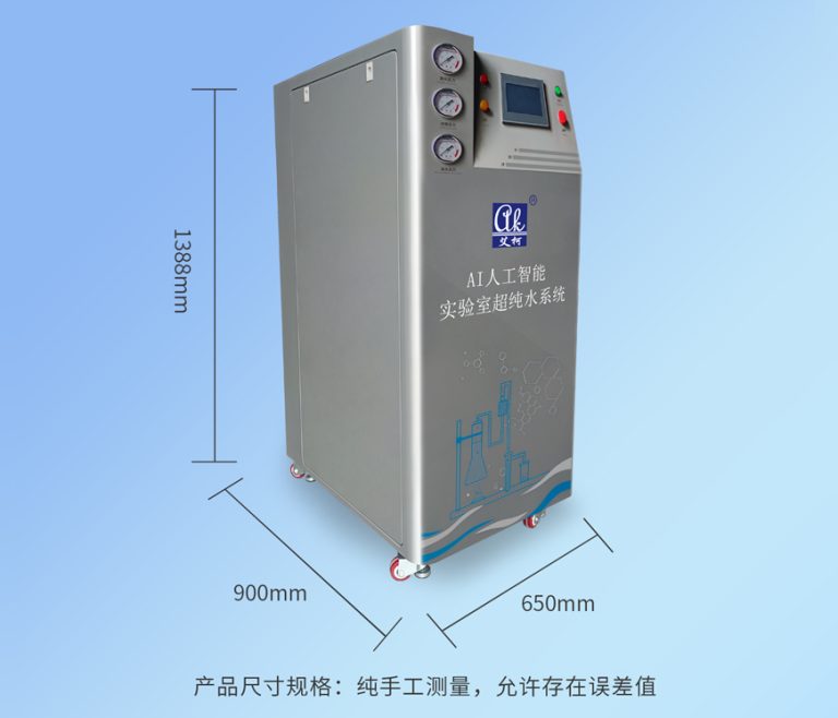 AI人工智能实验室超纯水系统“艾柯AI人工智能实验室超纯水系统是配备艾柯自主技术4G物联网功能,可连接手机或电脑远程操控整套系统,采用微电脑全自动控制,配备PLC物联网模块,人性化设计,占地面积小,操作使用方便。设备一机多用,可同时制备取用多种水质的水,纯净水、RO纯水、UP超纯水。产水量100-200L/H可选,RO水水质电导率≤5 μS@25℃,超纯水水质标准优于GB6682-2008一级水标准,全面满足各类清洗、实验、分析、科研等不同用水需求。”
